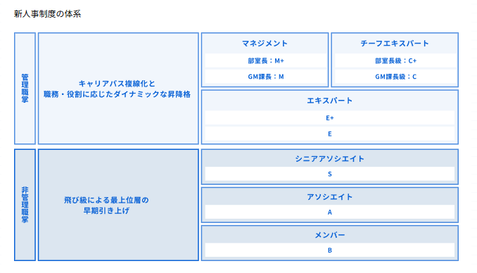- エキスパート(E / E⁺): 課長・高度専門職相当