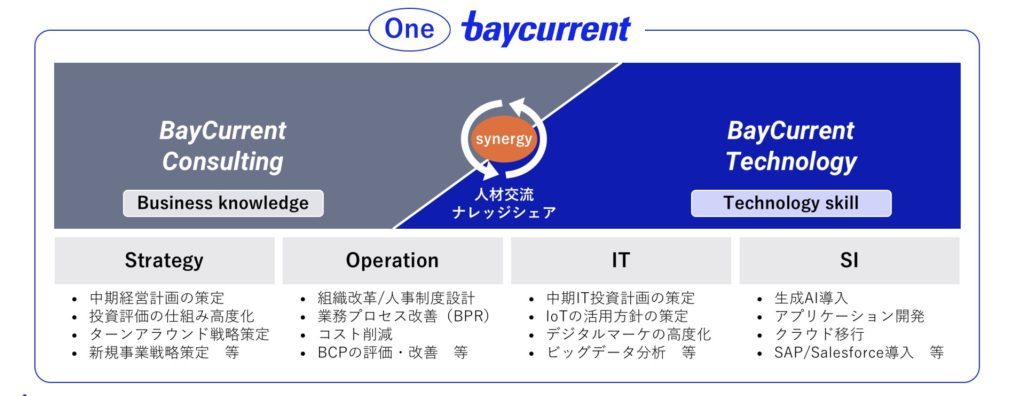 そして、この“円環”を実際に機能させているのが、BCCとBCTの”Onebaycurrent”体制だ。両社は法人としては分かれているものの、多くのプロジェクトではBCCとBCTのメンバーが共に参画し、構想策定から要件定義、開発、運用・改善までをシームレスに支援する。