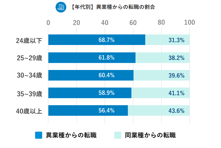 ただ、近年は異業種に転職する年齢が高まっており、30代・40代以上でも転職が不可能なわけではありません。